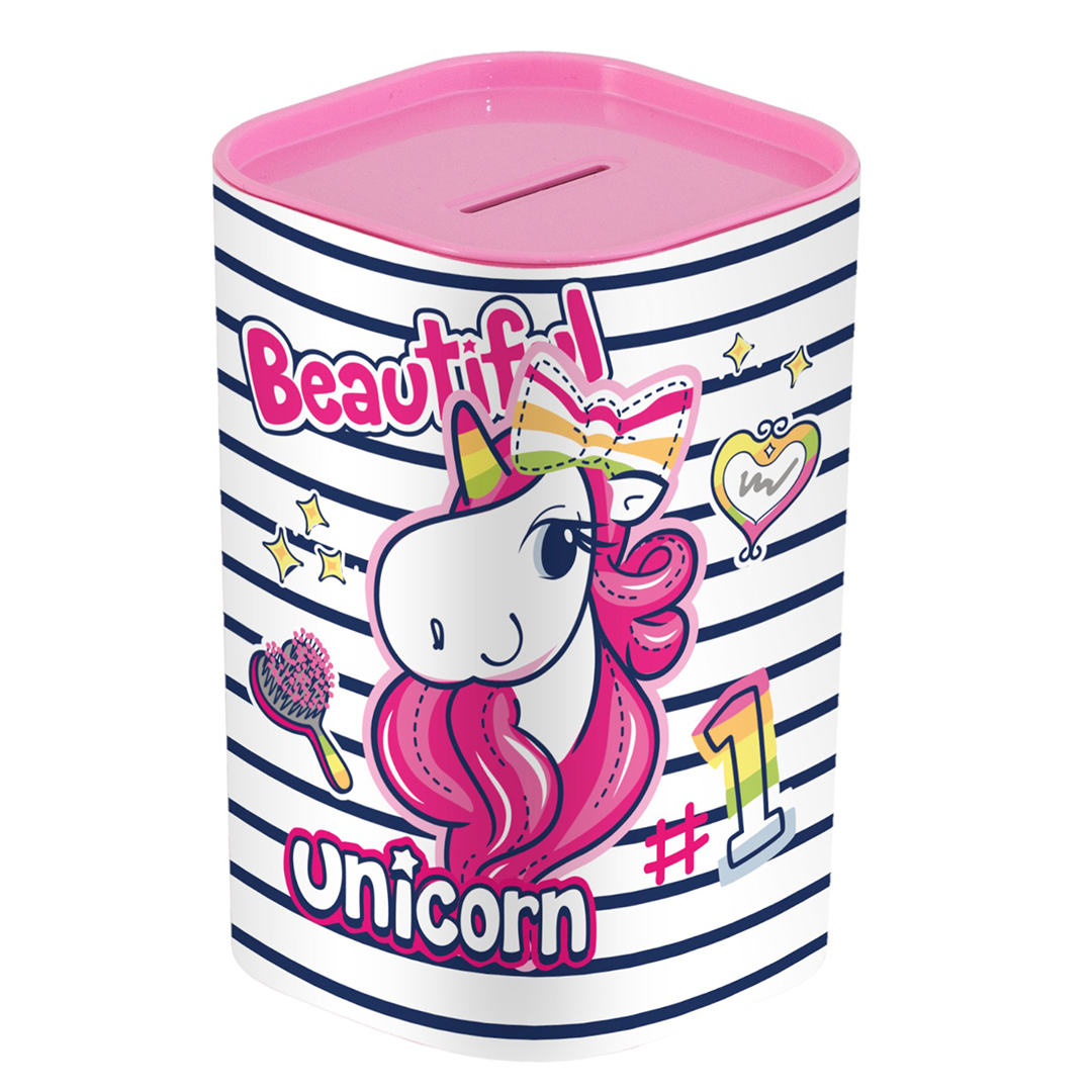 UNİCORN DESENLİ PLASTİK KUMBARA AÇILIR KAPAKLI