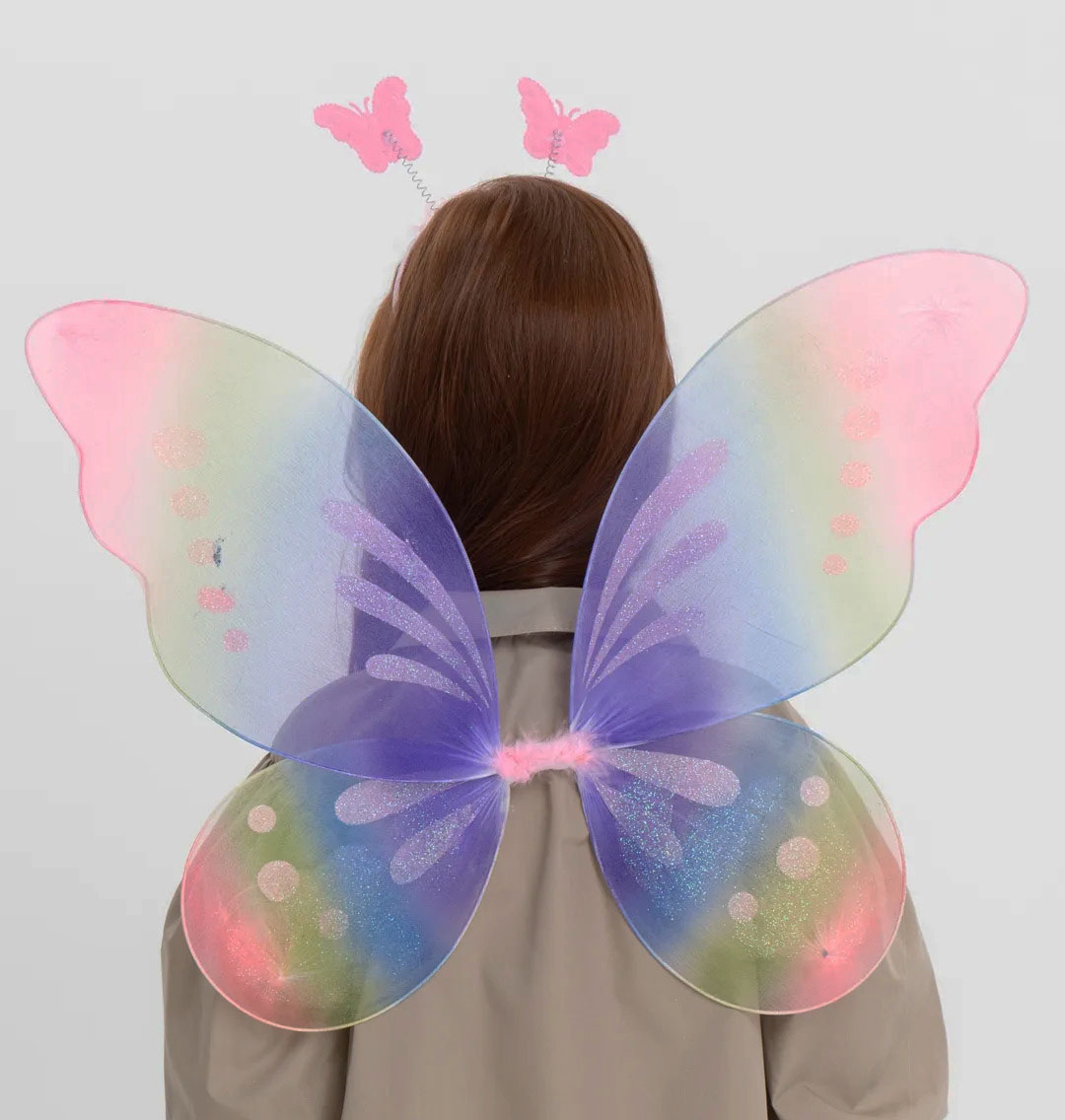 Gökkuşağı Renk Çocuk Kelebek Kanadı Tacı ve Asası Gösteri Kanadı 50x42 cm