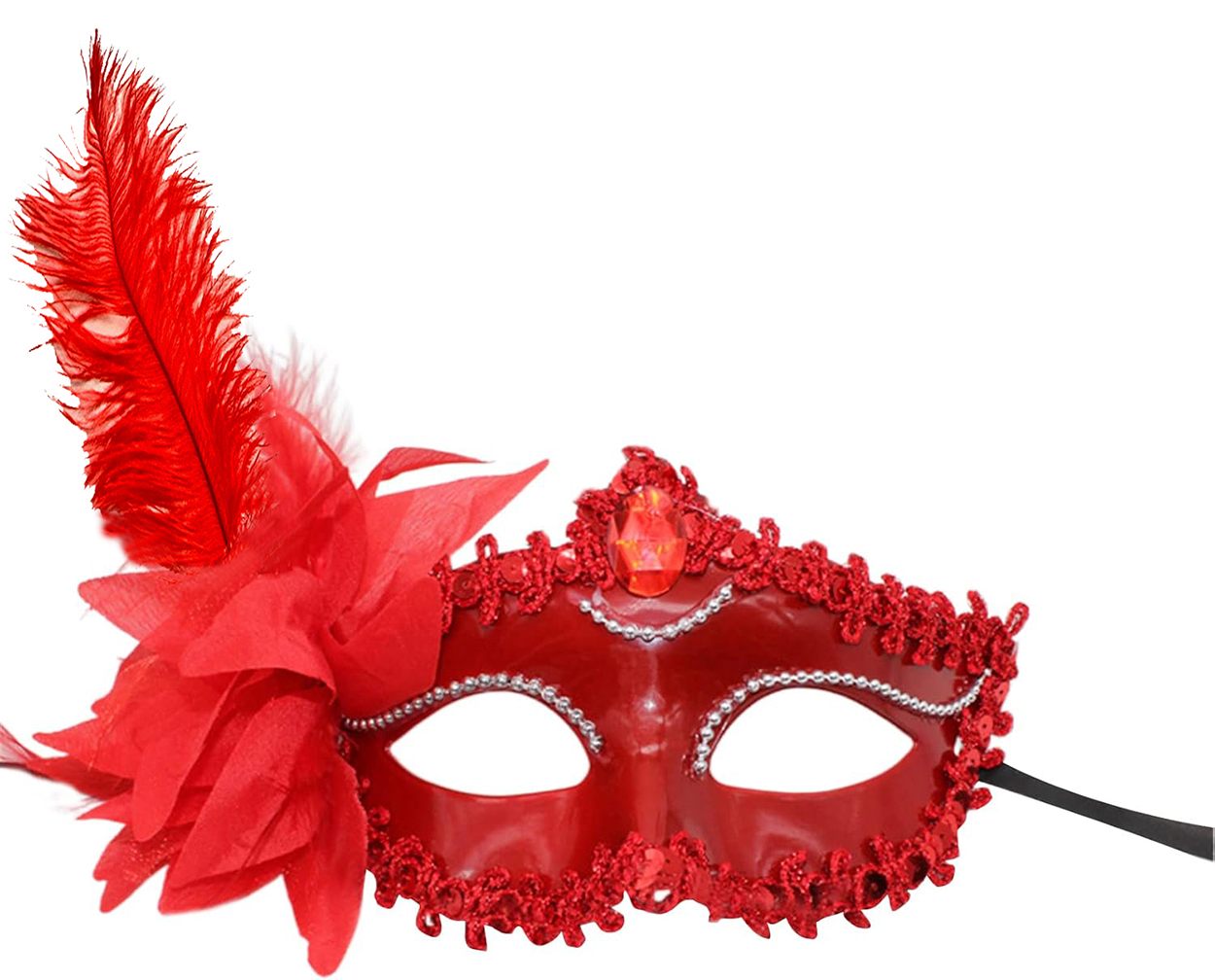 Kırmızı Renk Yandan Tüylü Güllü Parti Balo Venedik Maskesi 16x22, gizemli ve zarif bir görünüm oluşturmak isteyenler için tasarlanmış özel bir üründür. Kırmızı rengin asaleti ve yan tarafındaki tüy ve gül detayları ile göz alıcı bir stil sunarken, Venedik maskelerinin gizemli ruhunu da yansıtır.