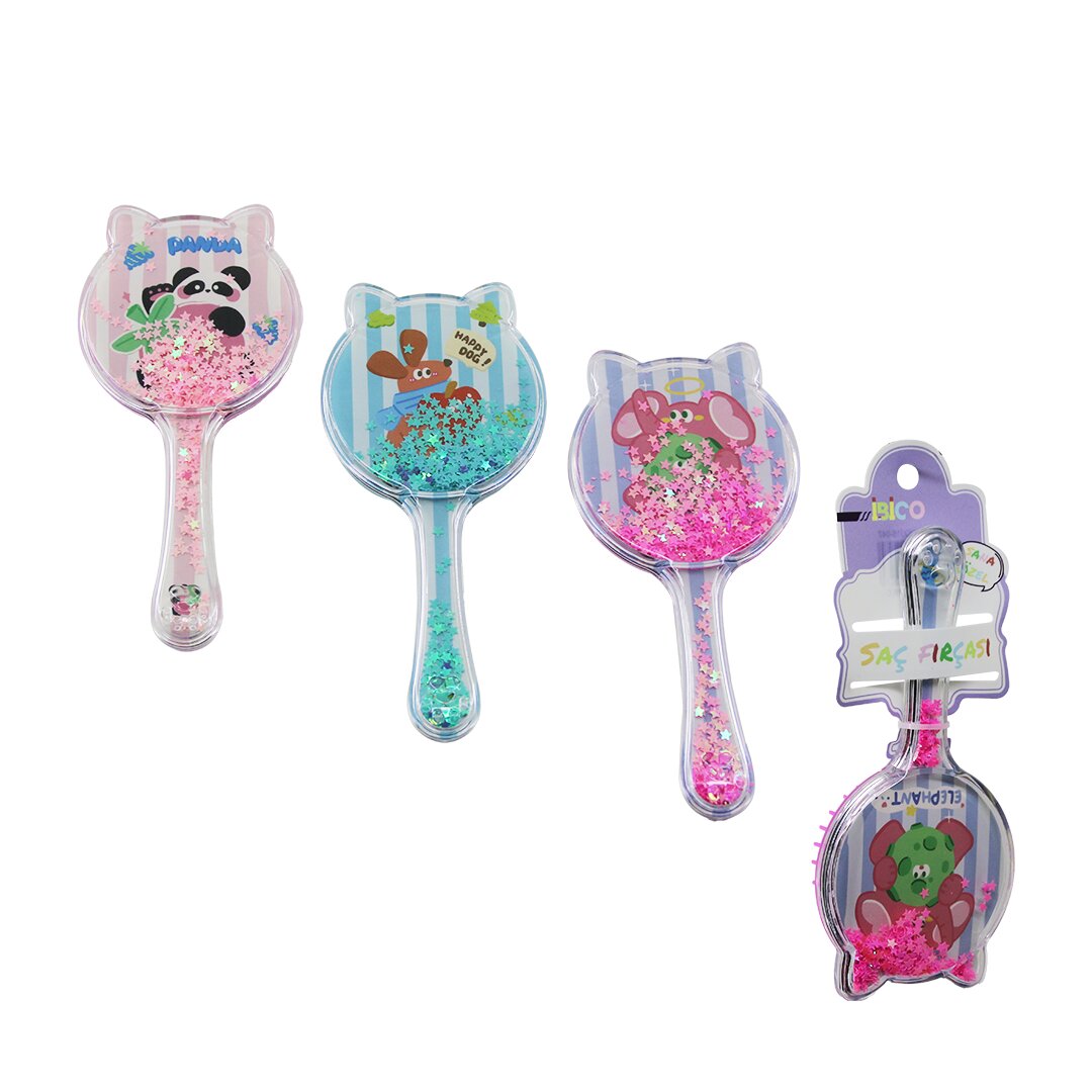KEDİ MODEL - ŞEFFAF MİKA SAPLI ÇOCUK SAÇ FIRÇASI=SİLİKON - TARAK ŞEFFAF SAP=HAYVAN RESİM - RENKLİ YILDIZLAR