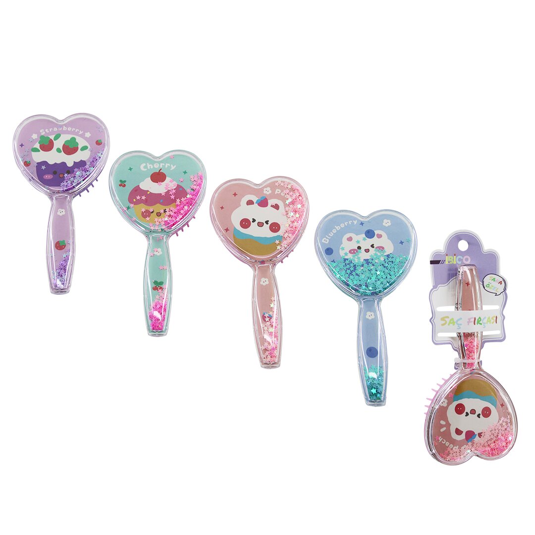 KALP MODEL - ŞEFFAF MİKA SAPLI ÇOCUK SAÇ FIRÇASI=SİLİKON - TARAK ŞEFFAF SAP=HAYVAN RESİM - RENKLİ YILDIZLAR