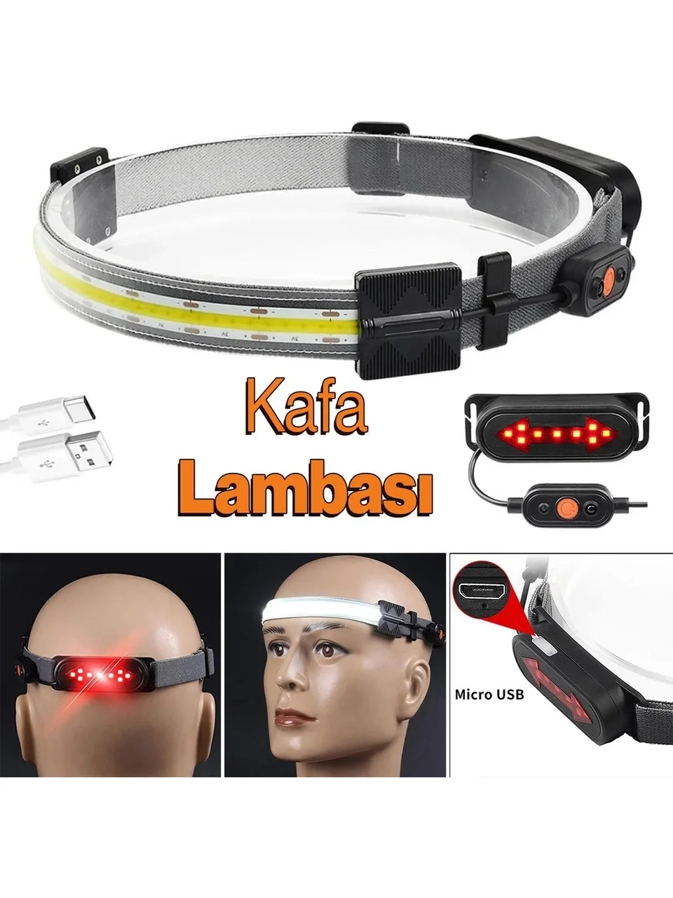 Şarjlı Kafa Lambası Bisiklet Reflektörü Ledli Kamp Kafa Feneri El Feneri 3 Modlu