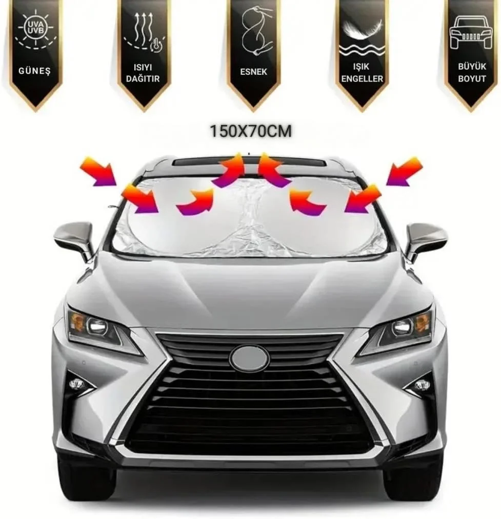 ☀️ Çift katmanlı milfon yapısı sayesinde güneş ışınlarını etkili şekilde yansıtarak aracınızın içini serin tutar ? Geniş 150x70 cm ölçüsü ile çoğu otomobilin ön camına tam uyum sağlar ? Katlanabilir ve kompakt tasarımı ile kullanım sonrası katlanıp kılıfına yerleştirilerek çantada veya araç içinde kolaylıkla taşınabilir ?️ Dayanıklı ve kaliteli malzemeden üretilmiştir, uzun ömürlü kullanım sunar ? Hem binek araçlarda hem de SUV gibi daha geniş araç modellerinde rahatlıkla kullanılabilir ?️ Özellikle yaz aylarında güneşin zararlı UV ışınlarına karşı koruma sağlar, torpido ve direksiyonun ısınmasını önler ? İşe giderken, uzun seyahatlerde, tatil veya park halinde araç kullanımında etkili çözüm sunar ? Estetik tasarımı ile aracınızın iç görünümünü bozmadan şık bir çözüm sunar ? Ürünü katladığınızda çok az yer kaplar, torpido gözüne, koltuk altına veya bagajınıza kolayca sığar ???? Çocuklu aileler için özellikle idealdir, çocuk koltuğunun bulunduğu bölgenin aşırı ısınmasını önler ?️ Araç park halindeyken güneş ışınlarının zararlı etkilerine karşı ekstra koruma sunar ? Kaliteli, ısıya ve deformasyona dayanıklı madde ile sizi uzun süre yarı yolda bırakmayan sade ve kullanışlı bir üründür ? Üniversal tasarımı sayesinde farklı marka ve araç modellerine yüksek uyum gösterir ✨ Aracınızın iç estetiğine zarar vermez, modern ve dikkat çekmeyen görünümü ile işlevini sessizce yerine getirir ?️ Araç içinde klima etkisini güçlendirirken, güneşli günlerde yakıt tasarrufuna olumlu katkı sunar