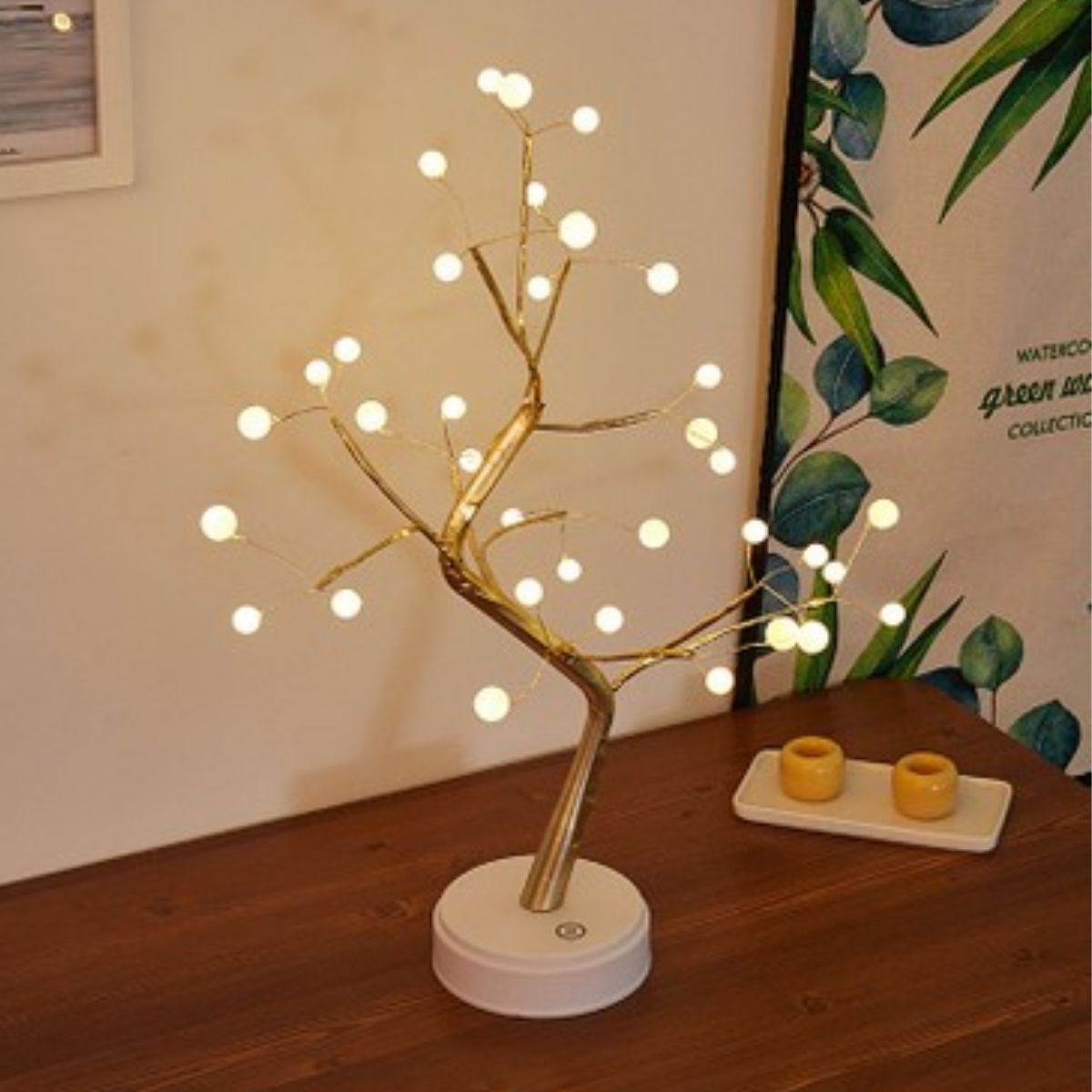 Masaüstü Boncuklu Şarjlı Ağaç Lamba – 3 Kademeli Dokunmatik Işık, Dekoratif LED Masaüstü Ortam Aydınlatması