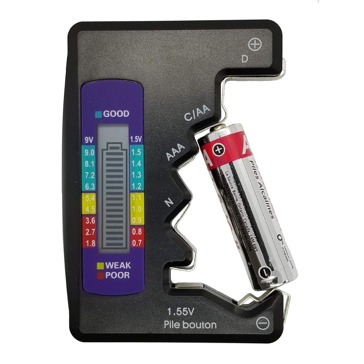 Evrensel Dijital Pil Test Cihazı – AA, AAA, C, D, N, 9V ve Düğme Pil Uyumlu Mini Pil Kapasite & Seviye Ölçer