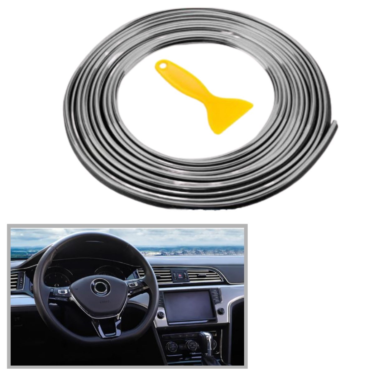 Gümüş Araba Oto Trim Dekorasyon Şeridi Kauçuk Elastik Kolay Kurulum 5 metre Şerit Bant