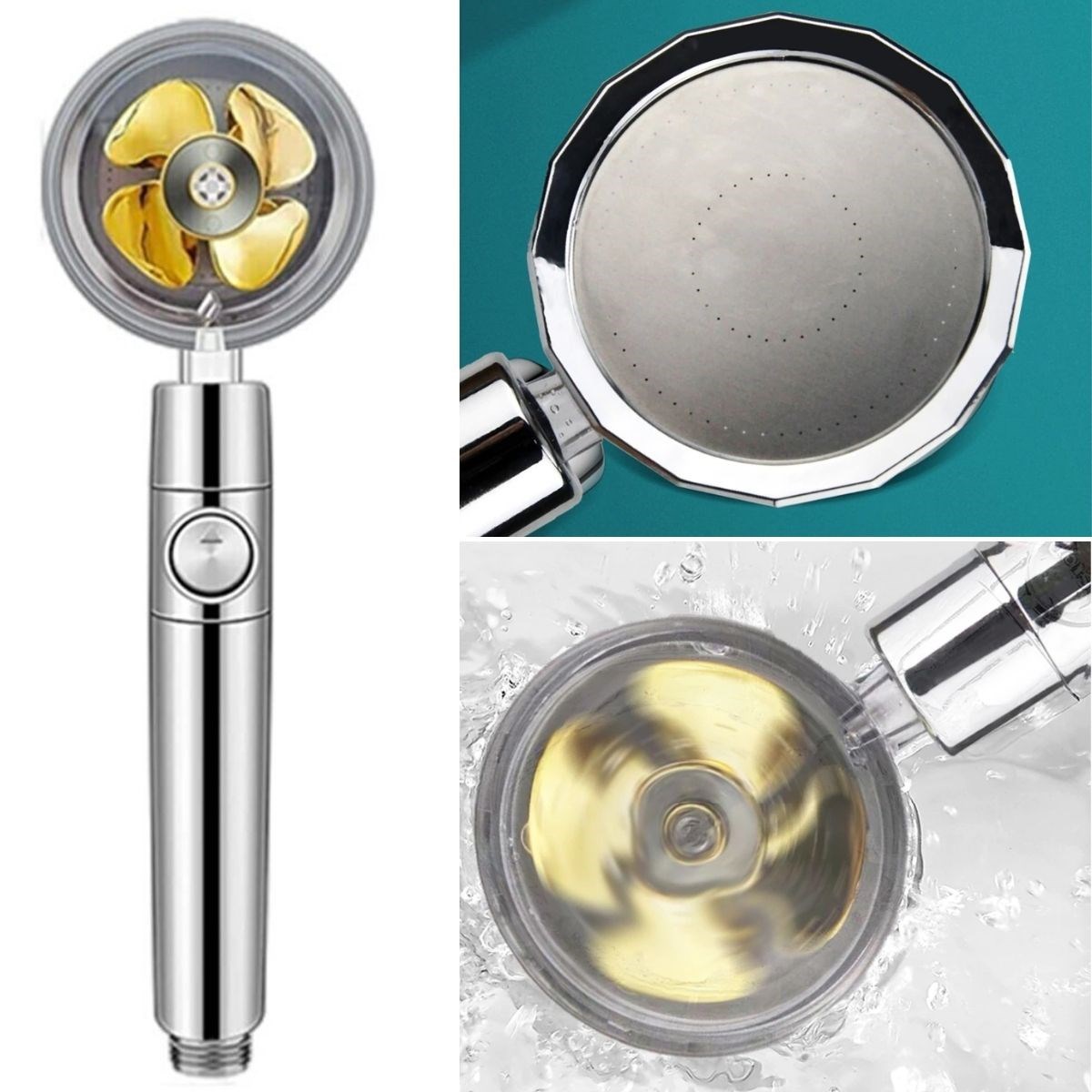 Duş Başlığı Turbo Pervaneli Serinletici Tasarım Start Stop Tuşu Duş Başlığı 360 Derece Döner