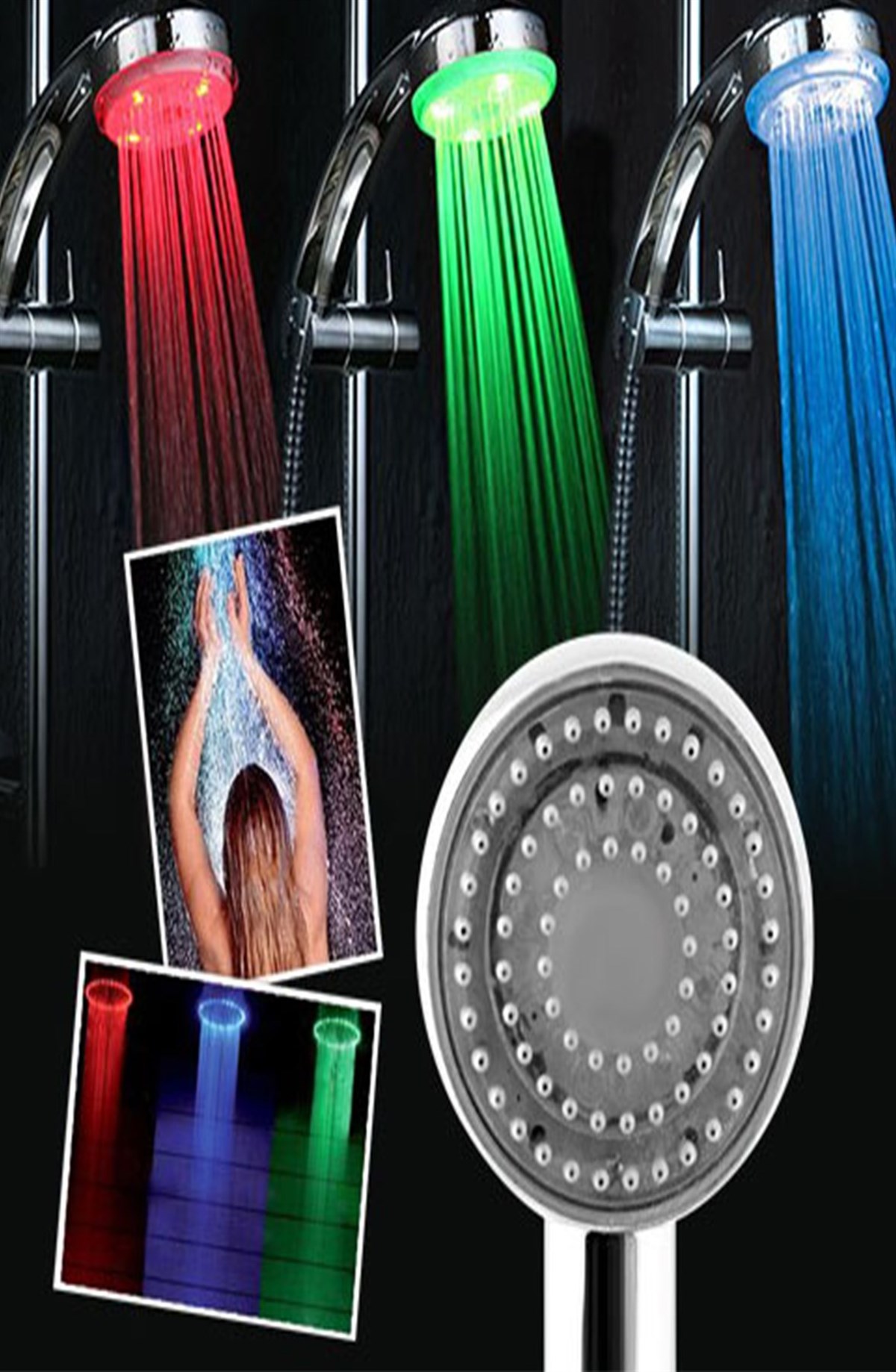 Suyun sıcaklığına göre farklı renklerde yanarak hoş görüntüler oluşturan, duş keyfinize renk katacak, pilsiz bataryasız duş başlığı.