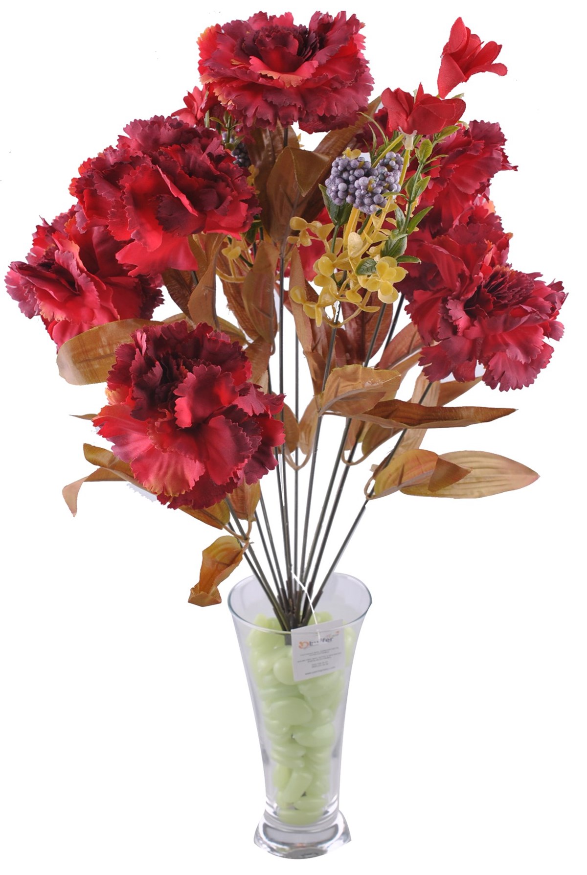 11 Dallı 50 cm Dekoratif Karanfil Kırmızı Renkli Yapay Çiçek