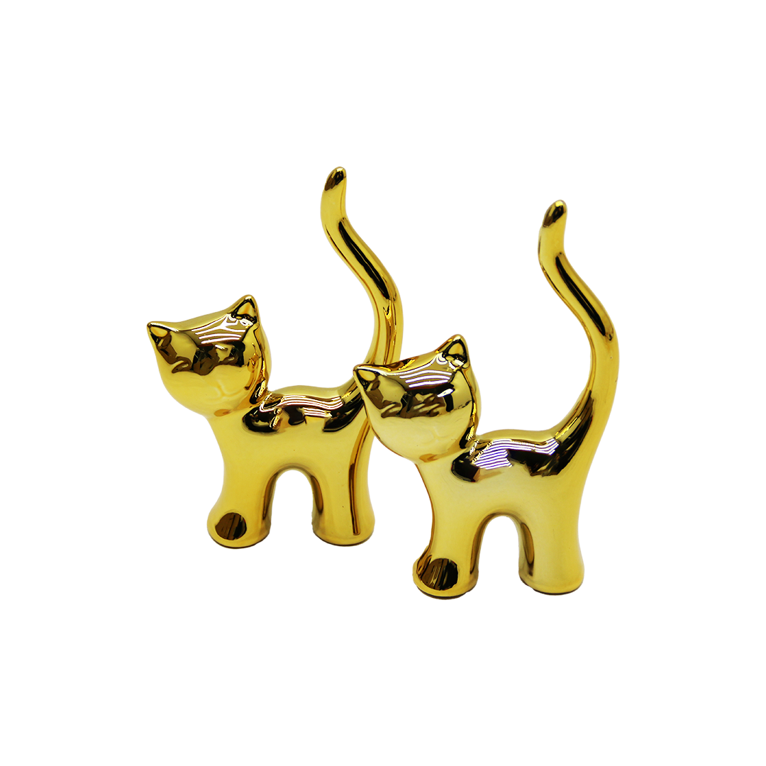 GOLD ORTA BOY SERAMİK KEDİ DEKORATİF SÜS - 9517