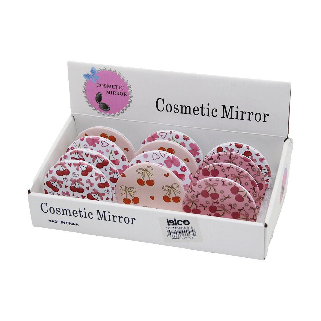 KİRAZ DESEN YUVARLAK CEP - ÇANTAMAKYAJ AYNASI ÇİFT TARAFLI = NORMAL