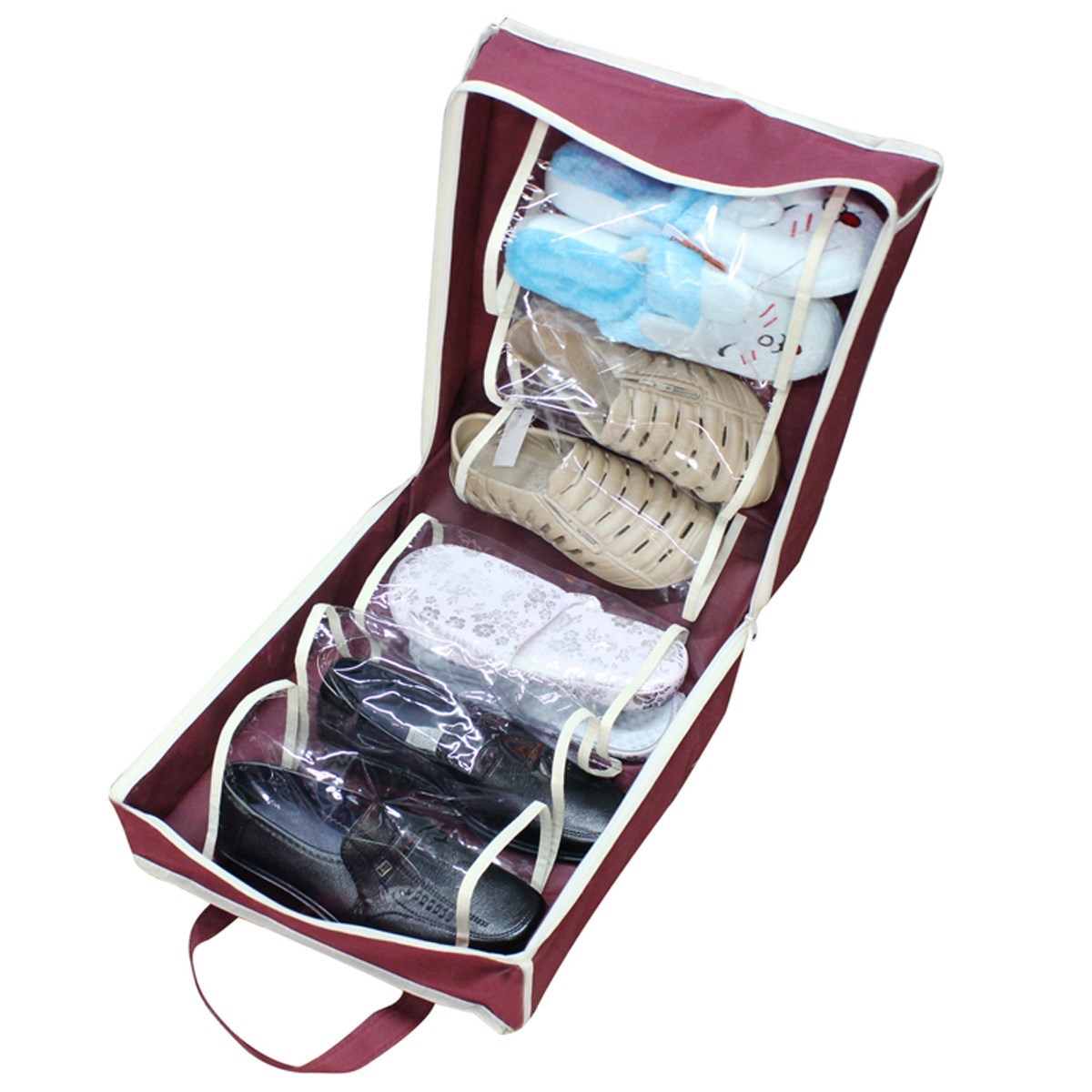 Shoe Tote ayakkabı valizi, çok fazla  yer kaplamaz, çekyat altına ve yatak altına rahatlıkla koyulabilir.